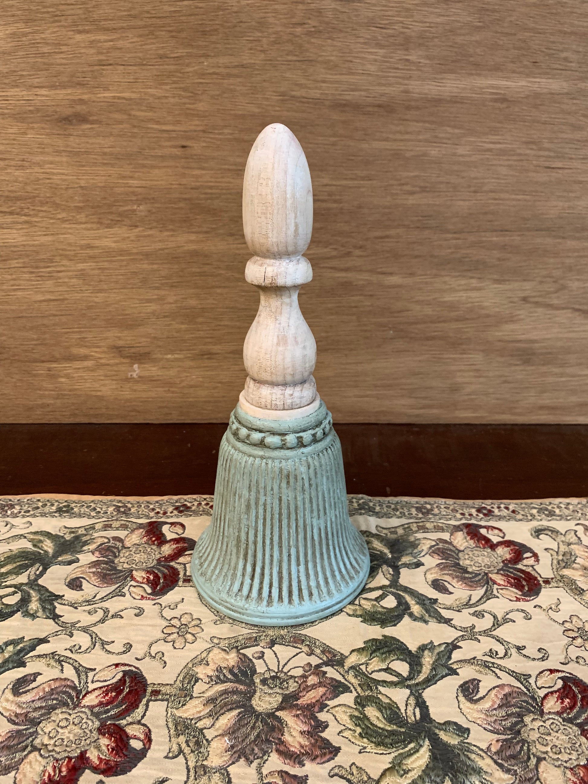 Sconce cover/ceiling fan light cover becomes a beautiful working bell. Glass with solid wood handle. 10 1/2” tall.
