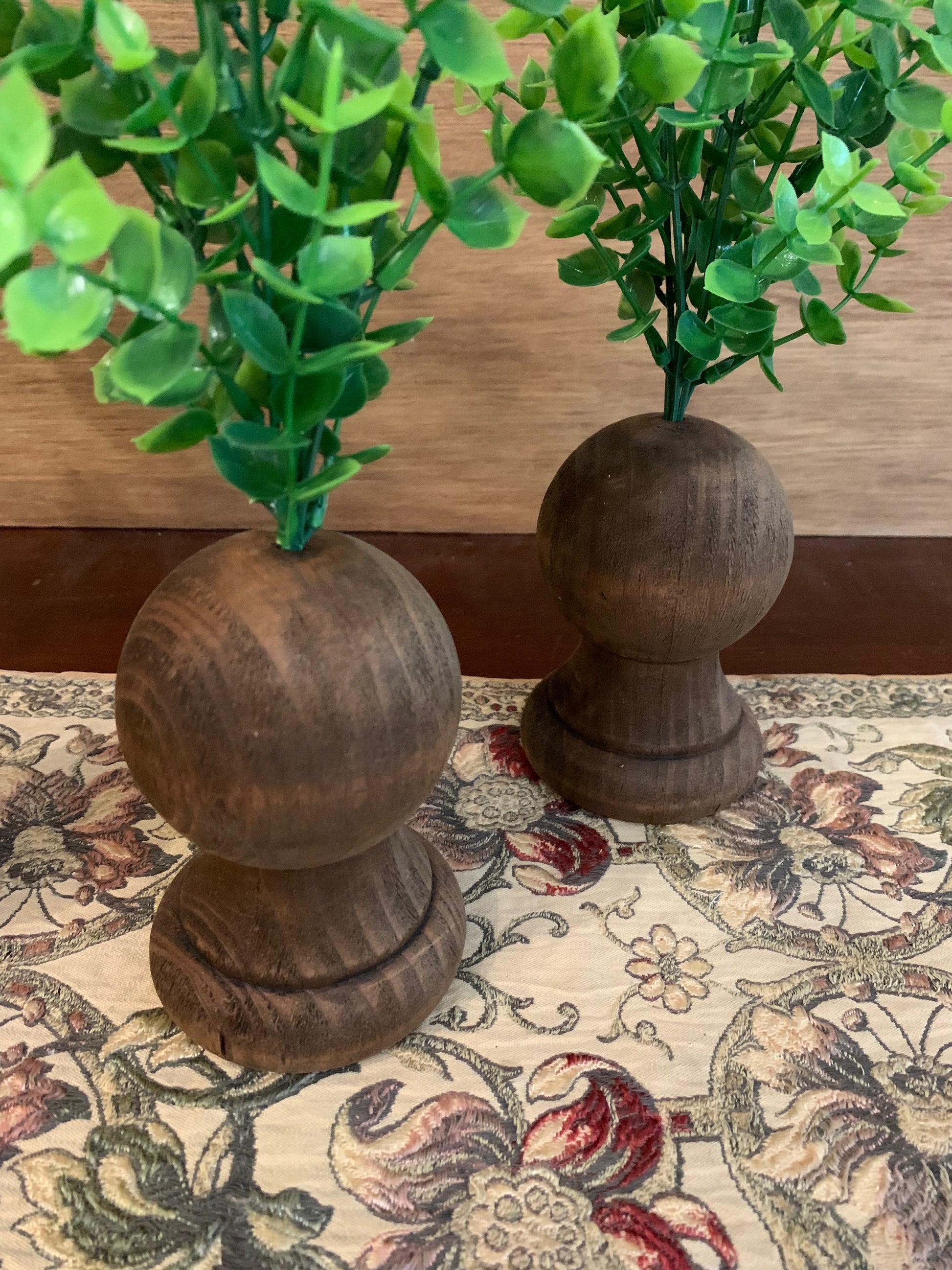 With or with faux flowers in a wood finial. Specify with or without. Approx 10-13” tall.